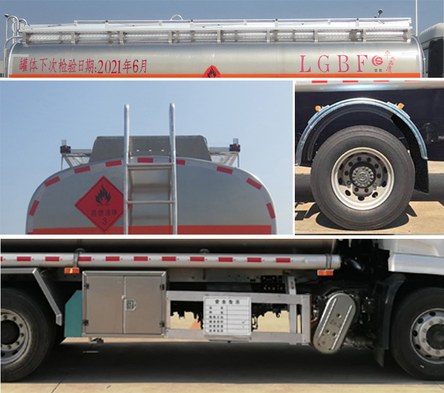 | 配置 | 1、該車(chē)適用于危險(xiǎn)品運(yùn)輸,運(yùn)送危險(xiǎn)貨物車(chē)輛類型為:FL型,類項(xiàng)號(hào):3。罐體有效容積:16.6立方米,運(yùn)輸介質(zhì):汽油,密度:700千克/立方米,罐體外形尺寸(長(zhǎng)×寬×高)(mm):5700×2300×1600。2、側(cè)/后防護(hù)材料為鋁合金,螺栓連接。后防護(hù)截面尺寸120×60mm,下邊緣離地高500mm。罐體上部選裝上走道,選裝弧形擋泥板,選裝右側(cè)防護(hù)樣式。3、僅采用軸距(mm):4700。后軸采用空氣懸架。隨底盤(pán)選裝駕駛室前面罩,選裝側(cè)窗玻璃;駕駛室頂部中間三個(gè)裝飾燈為選裝件;前霧燈為選裝件;駕駛室前臉擾流罩為選裝件。僅選用排氣管前置、限速裝置(限速80km/h)、前輪盤(pán)式制動(dòng)及子午線輪胎的底盤(pán);安裝帶有衛(wèi)星定位功能的行駛記錄儀;ABS型號(hào)/生產(chǎn)廠家:3631010-C2000/東科克諾爾商用車(chē)制動(dòng)系統(tǒng)(十堰)有限公司。采用的發(fā)動(dòng)機(jī)與油耗值(L/100Km)對(duì)應(yīng)關(guān)系為: B6.2NS6B210/26.5,DDi50E190-60/23.9。 該車(chē)后軸為采用空氣懸架.轉(zhuǎn)向輪安裝輪胎爆胎應(yīng)急防護(hù)裝置。該車(chē)型可選裝ETC車(chē)載裝置. | ||