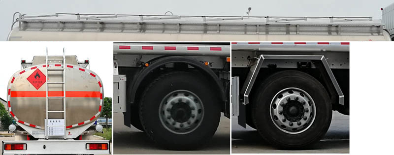 配置  1、該車適用于危險品運(yùn)輸,運(yùn)送危險貨物車輛類型為:FL型,類項號:3。罐體有效容積29.7立方米,運(yùn)輸介質(zhì):汽油,密度:700千克/立方米。罐體外形尺寸(長×寬×高)(mm):9200×2400×1650。2、側(cè)/后防護(hù)材料均為鋁合金,螺栓連接;后防護(hù)截面尺寸120×60mm,下邊緣離地高500mm。**軸選裝膠制擋泥板或方形擋泥板,罐體上部選裝上走道,選裝后牌照燈。3、隨底盤選裝平頂駕駛室;選裝駕駛室前面罩;高頂駕駛室頂部氣喇叭為選裝件;駕駛室前角擾流板為選裝件。僅選用排氣管前置、限速裝置(限速80km/h)、前輪盤式制動及子午線輪胎的底盤;安裝帶衛(wèi)星定位功能的行駛記錄儀。ABS型號/生產(chǎn)廠家:ABS 8/東科克諾爾商用車制動系統(tǒng)(十堰)有限公司。采用的發(fā)動機(jī)DDi75E350-60對應(yīng)油耗值為38.1L/100km。該車后軸為采用空氣懸架.轉(zhuǎn)向輪安裝爆胎應(yīng)急防護(hù)裝置。