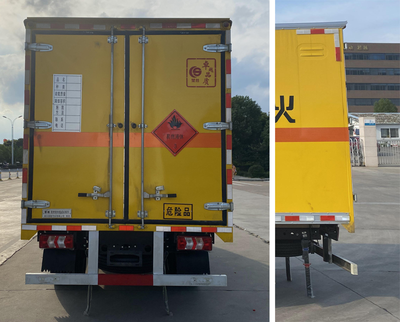 | 配置 | 1、該車適用于運輸危險品。廂體頂部封閉,不可開啟。類項號:2.1,2.2。2、側,后防護材料均為Q235,螺栓連接;后防護截面尺寸φ100mm,下邊緣離地高450mm。選裝后部無尾板,選裝無尾板時,后防護材料為Q235,焊接,截面尺寸100×50mm,下邊緣離地高450mm。3、廂體側面選裝開門型式及位置,選裝不帶側開門,選裝瓦楞板結構;廂體側面板選裝開百葉窗。安裝帶有衛星定位功能的行駛記錄。轉向輪安裝輪胎防爆應急防護裝置。僅選用排氣管前置、限速裝置(限速80km/h)、前輪盤式制動及子午線輪胎的底盤..ABS型號/廠家為:CM4XL-4S/4M /廣州瑞立科密汽車電子股份有限公司,ABS型號/廠家:VIE ABS-Ⅱ/浙江萬安科技股份有限公司。發動機/油耗值(L/100Km)對應關系為:WP2.3NQ130E61/10.83。該車型可選裝ETC車載裝置。液壓升降尾板收起狀態水平長度為280mm,尾板質量為350kg。 | ||