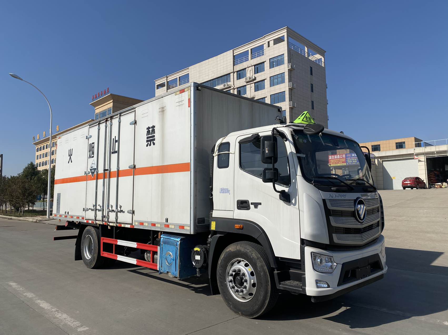 | 備注 | 該車為危險品運輸車,隨底盤選裝駕駛室,選裝后視鏡,選裝側開門型式及位置,選裝不開側門,選裝不同箱體外觀,選裝后部樣式,選裝后部尾燈架樣式,安裝限速裝置,限速80km/h,車廂頂部封閉且不可開啟;運輸獨立容器(瓶)包裝的貨物; | ||||||||||