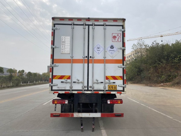 | 備注 | 該車為危險品運輸車,隨底盤選裝駕駛室,選裝后視鏡,選裝側開門型式及位置,選裝不開側門,選裝不同箱體外觀,選裝后部樣式,選裝后部尾燈架樣式,選裝后處理隔熱罩,安裝限速裝置,限速80km/h,車廂頂部封閉且不可開啟;運輸獨立容器(瓶)包裝的貨物 | ||||||||||