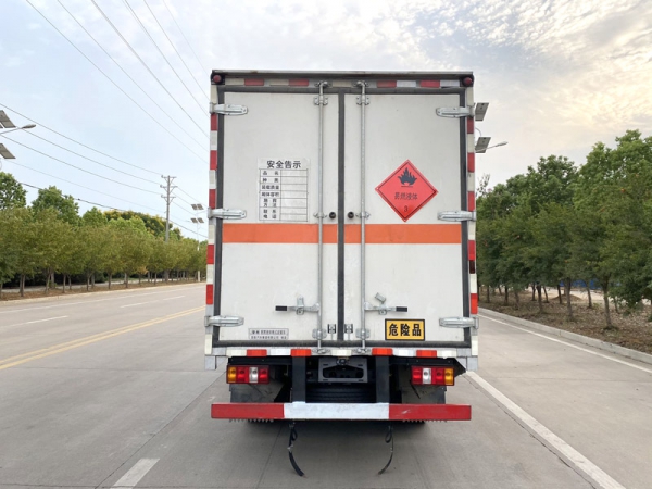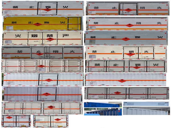 1、復(fù)合板工藝:嚴(yán)格按照公告尺寸制作。外板采用優(yōu)質(zhì)烤漆板(顏色可選:白,灰,檸檬黃)帶百葉窗,內(nèi)飾為導(dǎo)電性能良好的鋁平板有透氣孔,矩形骨架結(jié)構(gòu)內(nèi)部填充防火阻燃材料,復(fù)合加鉚合工藝。廂體四周鋁合金包邊及包角,車(chē)廂底板鋪設(shè)防靜電膠皮,廂體前臉50公分高鋪設(shè)防靜電膠皮。后部設(shè)置對(duì)開(kāi)門(mén),右側(cè)單開(kāi)門(mén),廂體內(nèi)部?jī)蓚?cè)安裝捆綁貨物的臥環(huán)。廂體內(nèi)部安裝煙霧報(bào)警器,門(mén)上安裝防盜報(bào)警器。車(chē)廂一周粘貼橙色反光帶,箱體粘貼菱形標(biāo)志牌,安全告示牌,危險(xiǎn)品牌,箱體安裝示廓燈(前白后紅),拖地靜電帶。
