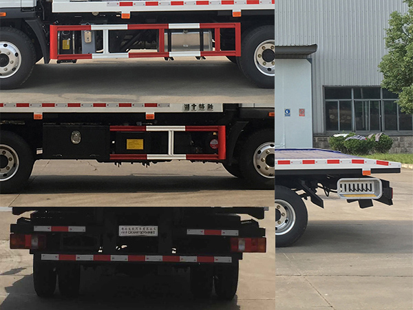 | 配置 | ABS型號:CM3XL-4S/3M(4SF)/XH-KQ4S3M-E01;ABS生產企業:廣州瑞立科密汽車電子股份有限公司/廣州市西合汽車電子裝備有限公司;隨底盤選裝前面罩,前保險杠,前組合燈具,隨底盤選裝前盤式制動器,前霧燈為選裝件。側、后防護材料均為Q235,側防護螺栓連接;后防護焊接,截面尺寸100×50mm,下邊緣離地高450mm;專用功能及裝置:該車主要用于道路清障,主要專用裝置為絞盤、鋼絲繩、油缸、平板;托舉質量(kg):準乘人數2人對應托舉質量為565kg,準乘人數3人對應托舉質量為500kg. | ||