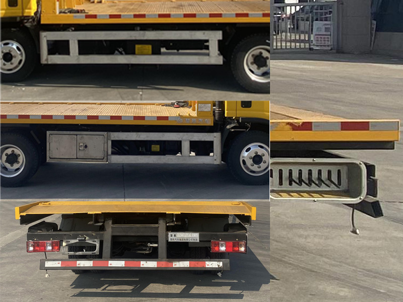 | 其它: | 該車主要用于道路清障,主要專用裝置為平板、絞盤、鋼絲繩、油缸。該車無托舉功能。側防護材料為鋁合金,螺栓連接;后防護材料為Q235,焊接,截面尺寸100×50mm,離地高度460mm。ABS型號/廠家:VIE ABS-II/浙江萬安科技股份有限公司。 |