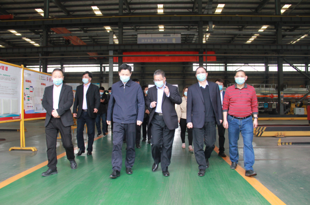 市領導一行參觀了公司的罐式車、自卸車、備料中心等生產(chǎn)車間和正在建設的創(chuàng)新工廠項目。