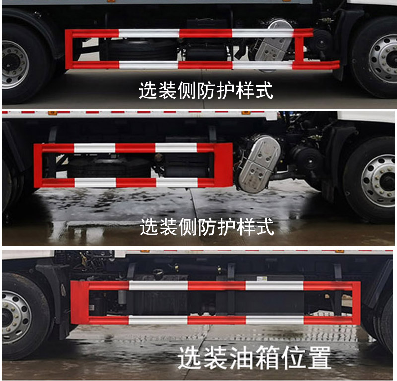 配置  1、該車主要專用裝置為箱體、翻桶機構、壓填機構、液壓系統、電氣**系統等組成,主要用于垃圾的收集與清運。僅采用4500mm,4700mm軸距。整車外形長/前懸/軸距對應關系為:8300/1400/4500,8330/1430/4500,8500/1400/4700,8530/1430/4700。2、側防護采用冷彎型鋼/Q235,螺栓連接;后防護采用冷彎型鋼/Q235,焊接,截面尺寸(mm):120×60。下邊緣離地高:450mm。選裝后部無擋桶桿。3、隨底盤選裝選裝高度不同的駕駛室;選裝前霧燈;選裝駕駛室頂部裝飾燈;選裝駕駛室前面罩;選裝前保險杠及前部燈具,選裝后視鏡;選裝后部燈具;選裝駕駛室前臉擾流罩;駕駛室臥鋪側窗選裝裝飾板。安裝帶有衛星定位功能的行駛記錄儀。ABS型號/生產廠家:3631010-C2000/東科克諾爾商用車制動系統(十堰)有限公司,ABS 8/東科克諾爾商用車制動系統(十堰)有限公司, 4460046450/威伯科汽車**系統(**)有限公司。采用的發動機與油耗值對應關系為(L/100Km):DDi50E190-60/23.9,D4.5NS6B190/24.4,D6.7NS6B230/23.7,B6.2NS6B210/23.8,B6.2NS6B230/23.8。選裝側防護樣式,選裝油箱位置。