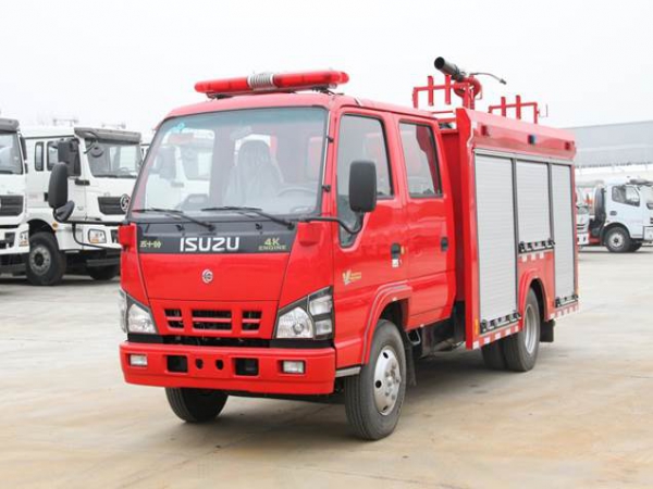 2噸消防車采用慶鈴汽車股份有限公司QL1070BUHWY 型二類汽車底盤,原裝雙排駕駛室,乘員2+3人,該車駕乘舒適輕便。上裝采用內藏式水罐,整車載液量為1880kg。器材箱采用高質量鋁合金卷簾門。底盤取力,發動機型號為4KH1CN6LB,最大功率88kW,通過萬向聯軸器驅動安裝在汽車尾部泵房里的上海雄真CB10/30型常壓消防泵,可在1.0MPa下穩定輸出30L/s的流量;車頂安裝威斯特PL8/24型消防炮,流量30L/s,對應壓力0.8MPa,最大承壓1.3MPa,射程 水:≥60m 泡沫≥45m,可360°旋轉。該車具有軸距短、通過性強、綜合性能強、操控集中簡便等特點。